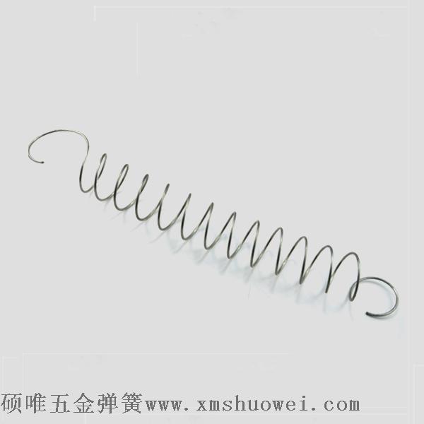 抗拉强度高,使用寿命长:1000000次—5000000次,硬度高,弹性好。有耐酸碱的,耐高温1100ºC。公司独特拥有目前国内最先进最精密的弹簧设备;调机速度快,生产速度快、对高难度、多折位弹簧,全部一次性成形,无需另外加工。
